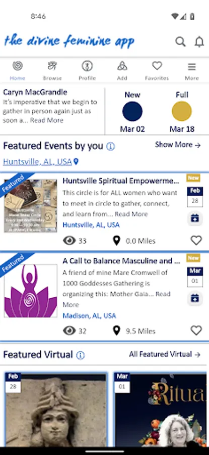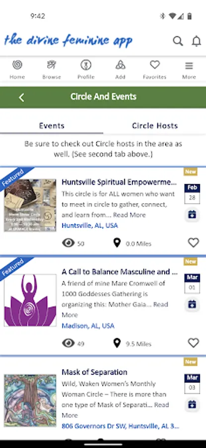 The divine feminine app has been around since 2016 bringing together women (and other genders) from around the world doing the work of the Mother. Connecting. Inspiring. Informing. And helping you to meet in Sacred Circles to help each other live more mindfully, intuitively and sensually, providing community, connection and inspiration. Ecstatic living with nature and in nature bringing balance to the world. Includes Women's Circles and all Gender Circles. Pagan, Wiccan, Indigenous, Celtic. Mother Earth spirituality. Incorporating drumming, chanting, singing, movement, dance, meditation, talking pieces, sustainability, healthy eating, divination and more.
