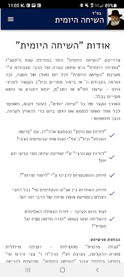The short length of each "Daily Sicha", about ten minutes, allows everyone to find the time of day to listen to the conversation. This allows: