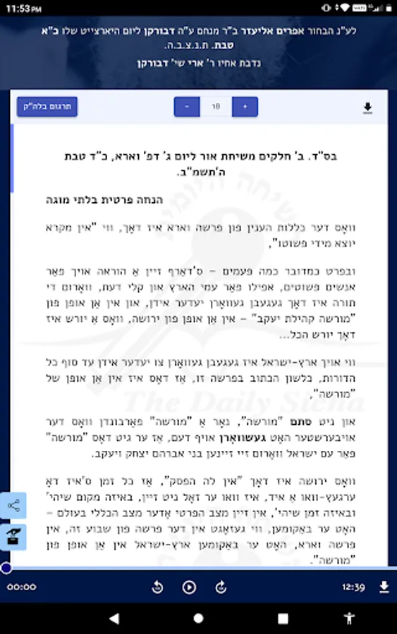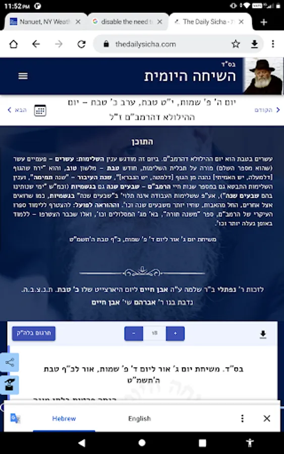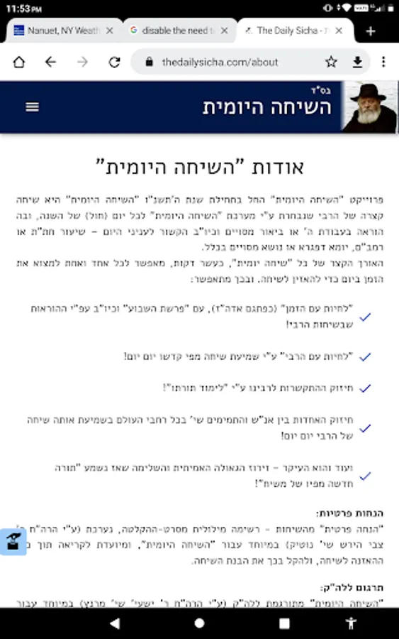 The daily Sicha is a short Sicha of the Rebbe chosen by the "Daily Sicha" system for each day (week) of the year, with instruction in the work of G-d or a specific commentary, etc. Related to current affairs - Chitas or Rambam lesson, Yoma Depgra or a specific topic in general.