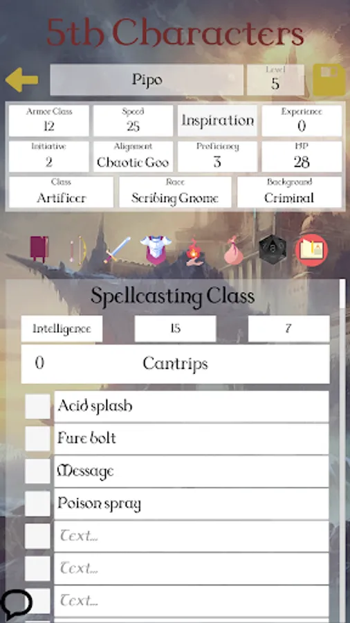 Our app streamlines character management, allowing you to keep track of your character's progress, inventory, spell slots, and more. Say goodbye to the hassle of manual character sheets and embrace the convenience of digital character management that is always accessible at your fingertips.