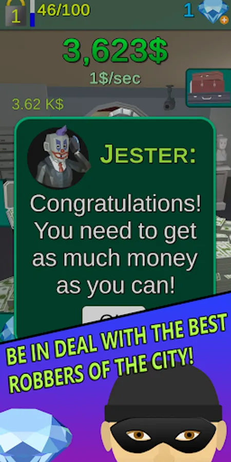 In an unusual game clicker you have to rob a bank and create the crime empire!