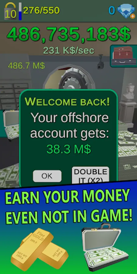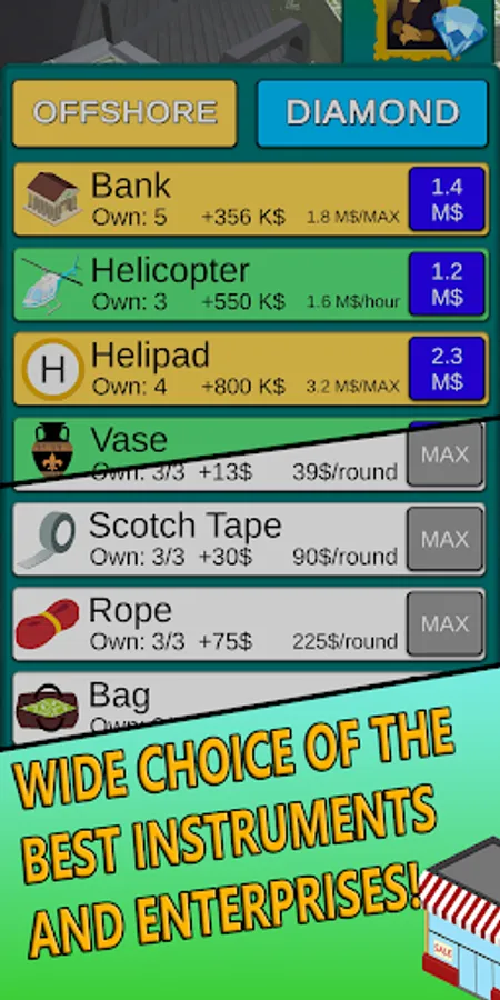 Buy upgrades for your equipment, purchase property, improve your offshore account, hire bandits, so you can climb up the criminal ladder.