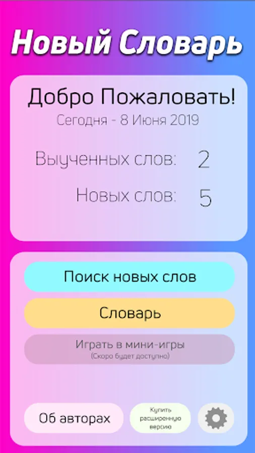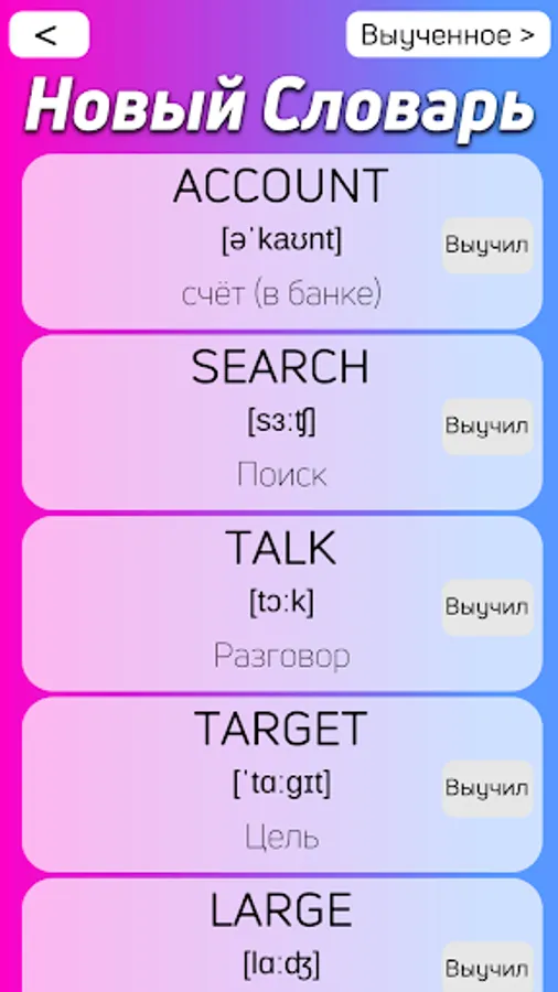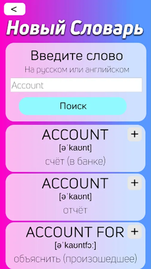 New Dictionary is a dictionary/translator app that will help you learn words. The new Dictionary contains an English Russian translator function and can store many words in memory. See off-line translations of words. All words from the offline dictionary contain transcription, because it is difficult to learn English when there is no transcription. Try our app and soon you will be able to say - this is my dictionary.