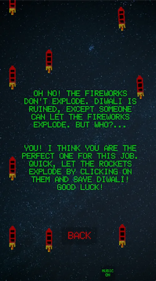 YOU!! You are the perfect one for this job. Let the fireworks explode by clicking on them and save Diwali. What are you waiting for? Go get the game.