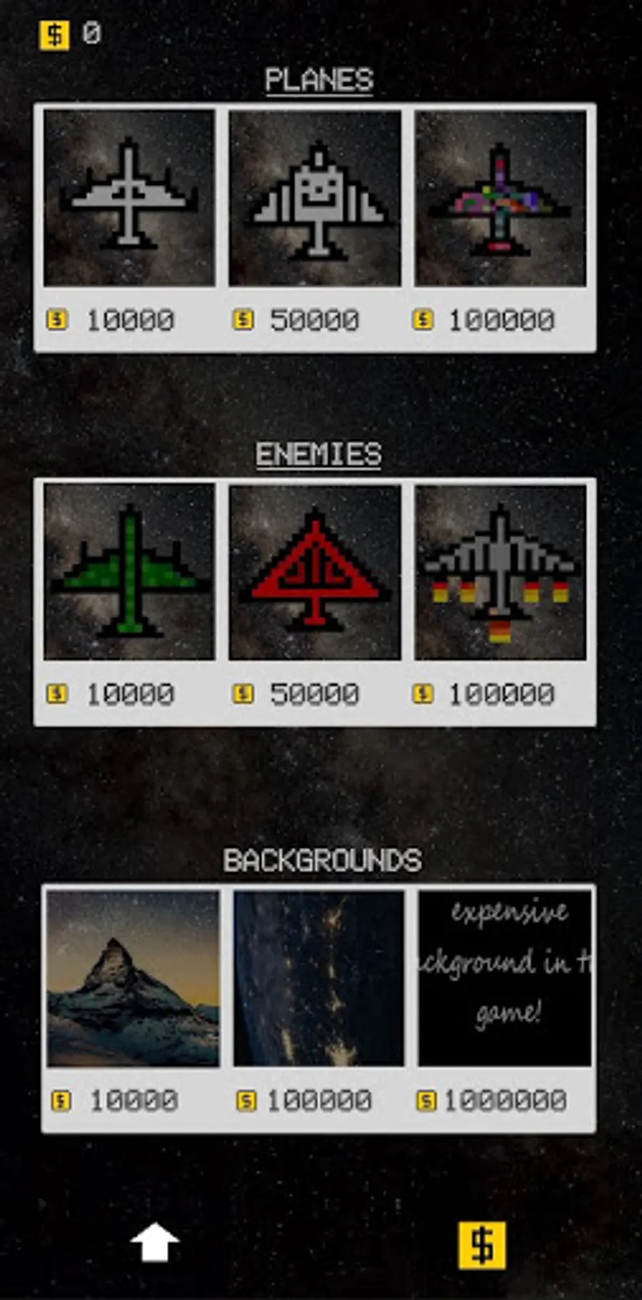 You can buy player skins, enemy skins and backgrounds with the ingame coins you collect during playing.