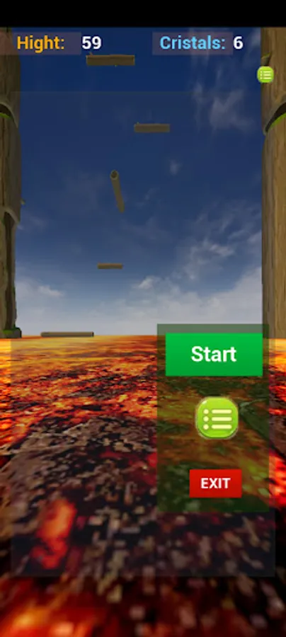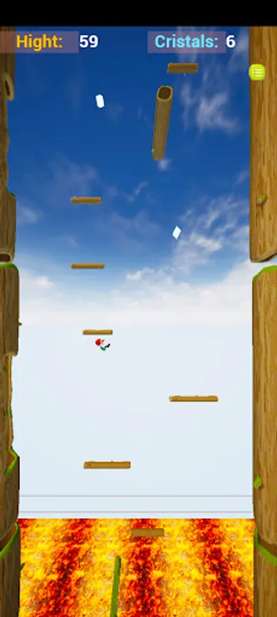 1 уровень прыгаете в верх. Лимит 10000 высота и переход на новый уровень.