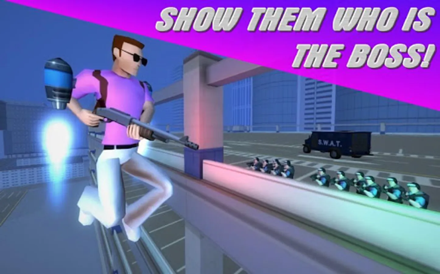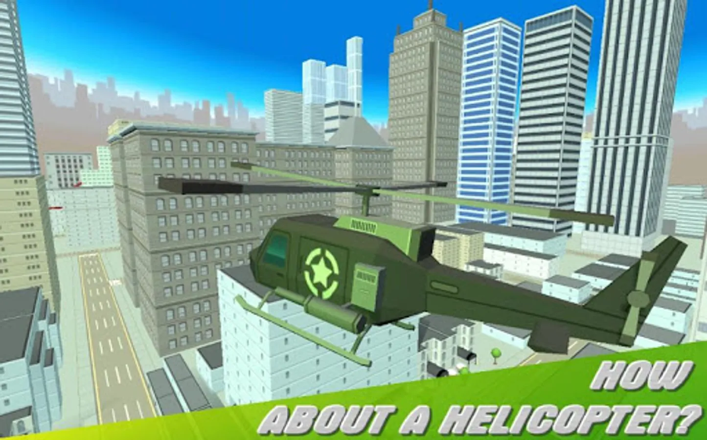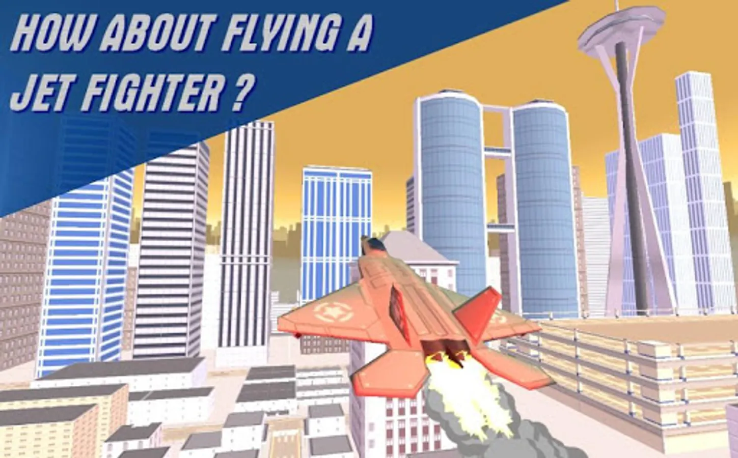 Fly through the city in a jetpack, different helicopters, and even a jet fighter!