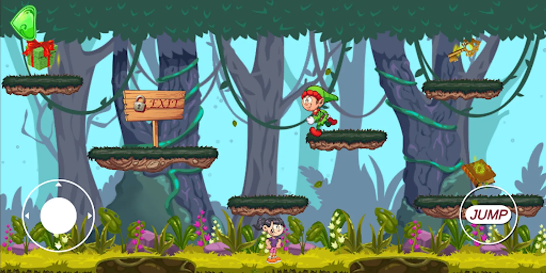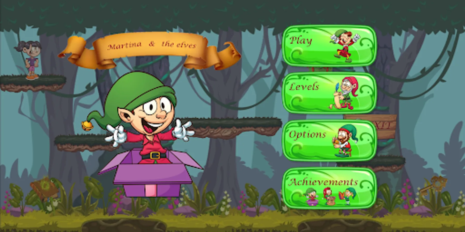 Help martina to search the key and scape!!!...but beware the forest is full of crazy elves.