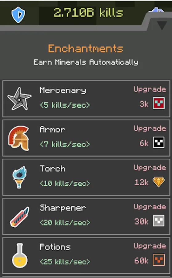 Use minerals to upgrade tools or enchantments