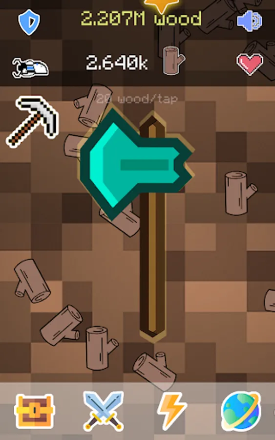 With AXE, PICKAXE, SHOVEL, HOE, and SWORD