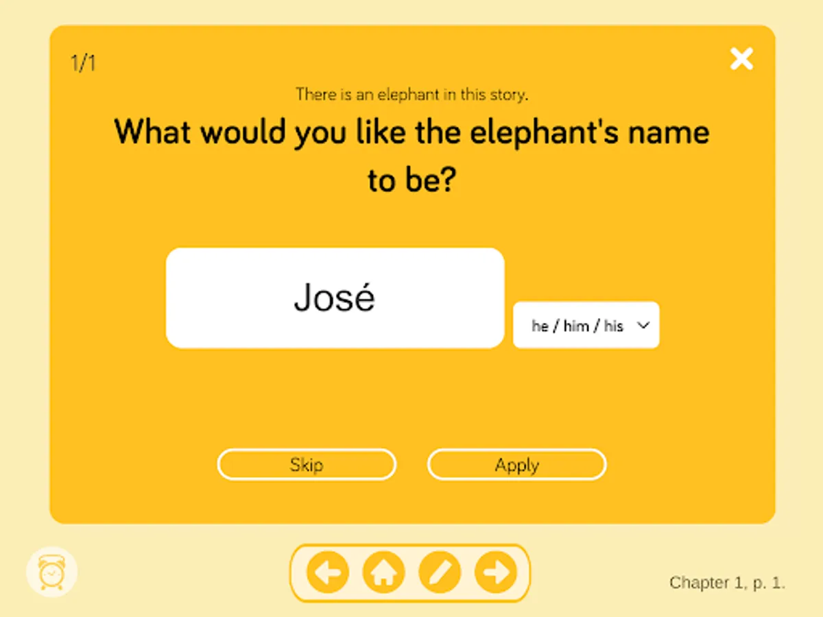 The magic of our stories extends to their customizability. Before starting a story, our readers can customize it (if they wish) by selecting characters' names, genders, pronouns, and locations. Allowing readers to shape their own stories makes them exceptionally engaging.