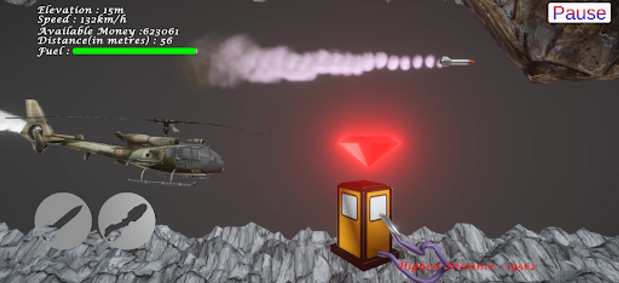 You can fly different helicopters in an infinite long cave. It is a very exciting adventure as the helicopter may get accident, earn diamonds and collect fuel. There are so many obstacles in the cave such as big stones & missiles which may destroyed your helicopter.