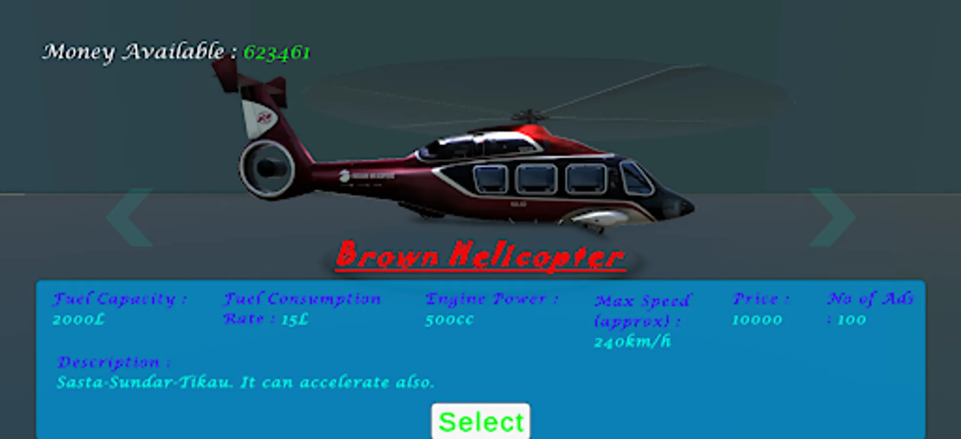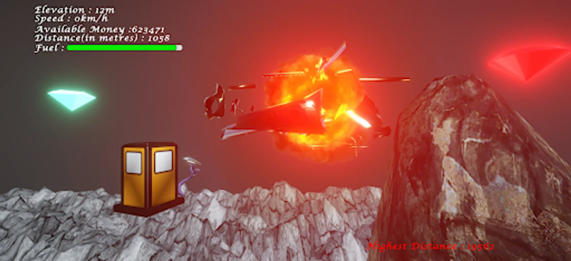 You can fly different helicopters (all unlocked) in an infinite long cave without any ads disturbance. It is a very exciting adventure as the helicopter may get accident, earn diamonds and collect fuel. There are so many obstacles in the cave such as big stones & missiles which may destroyed your helicopter.