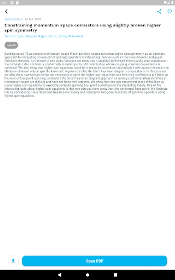 ArXiv Mobile allows users to browse, save, and read preprints listed on arXiv straight from their mobile devices. ArXiv Mobile provides users the option to read papers without having to download the PDF onto their phones.