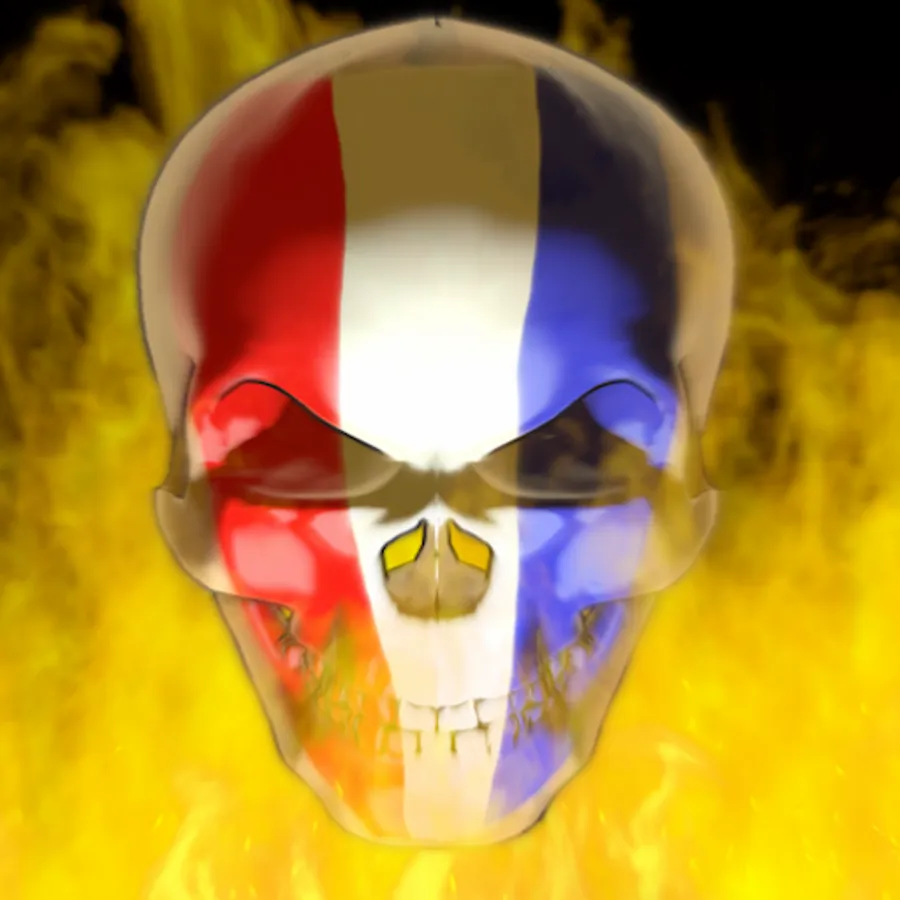 Get this exciting new Dynamic wallpaper of a red white and blue Victory skull bathing in flames. just kicking back and watching the fire dance around our screen is relaxing and cool.