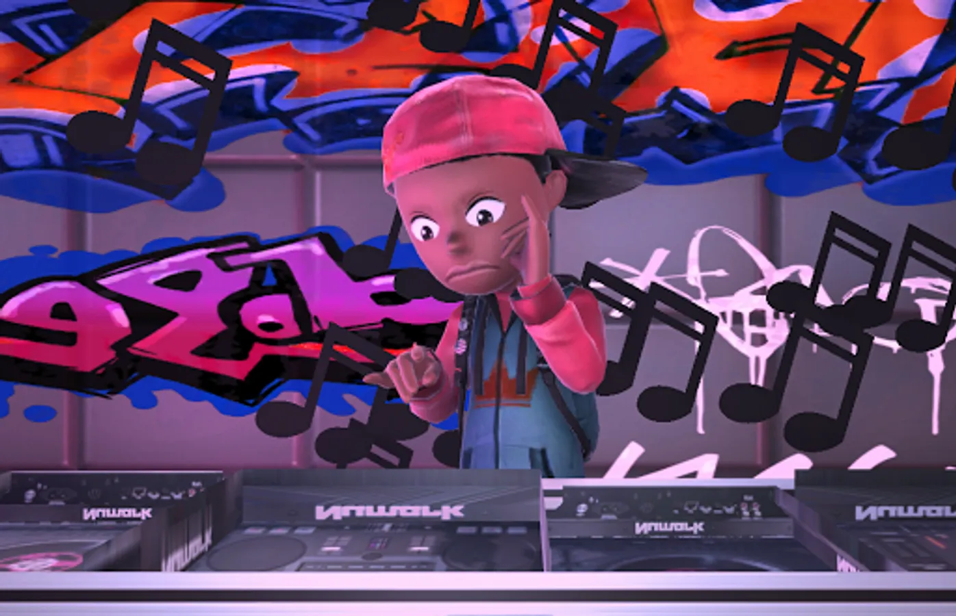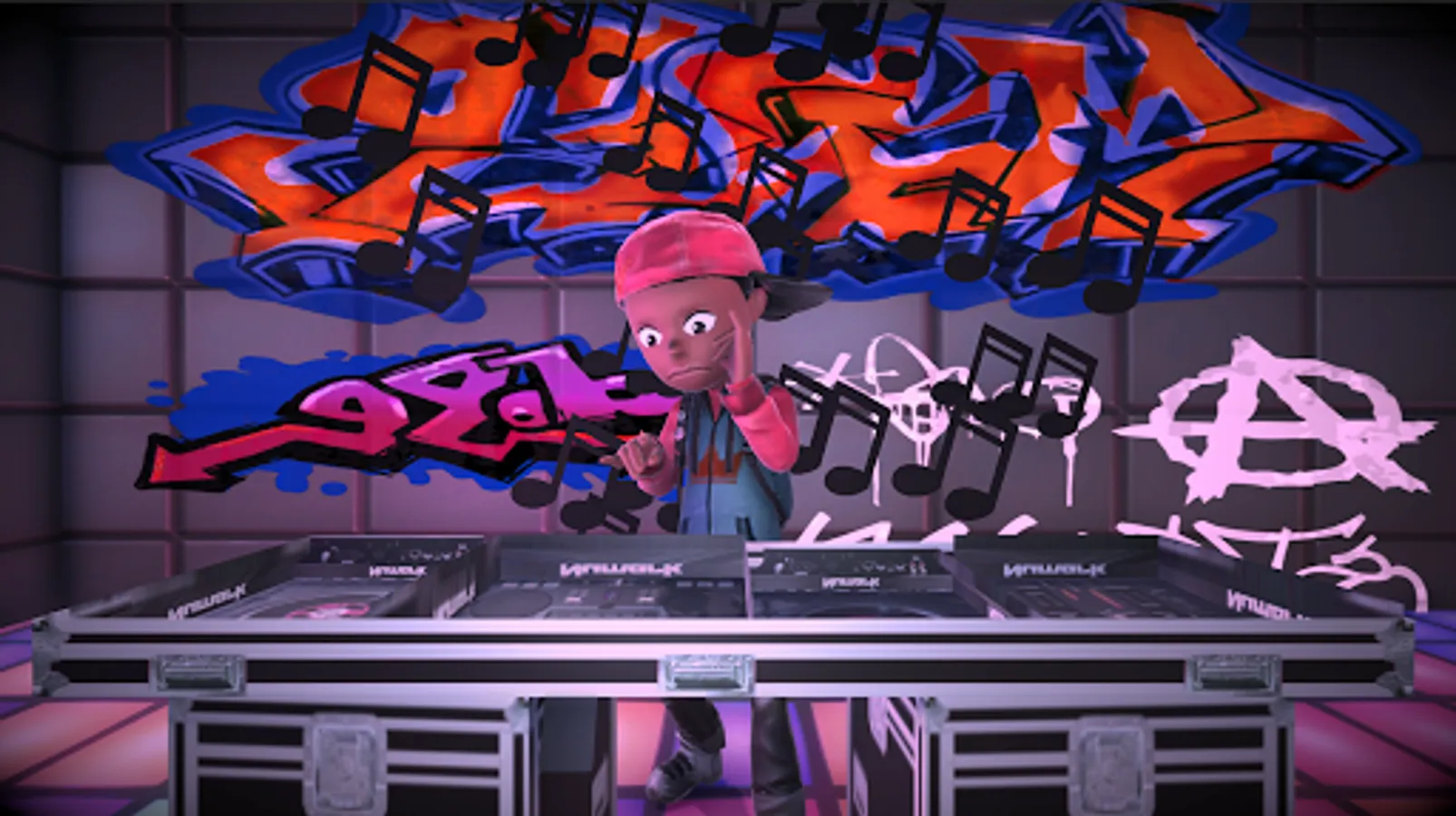 Dj spins his records as the dance floor moves and musical notes float up from the turntables. This is a visually pleasing wallpaper and a great addition to anyone's lifestyle.