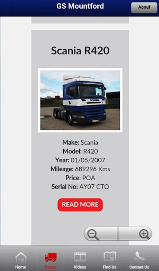 In the GS Mountford app you can check out all of the latest trucks for sale, from tractor units to trailers, rigid trucks to generators. There's even videos of some of them so you know exactly what you're buying before you give us a call!