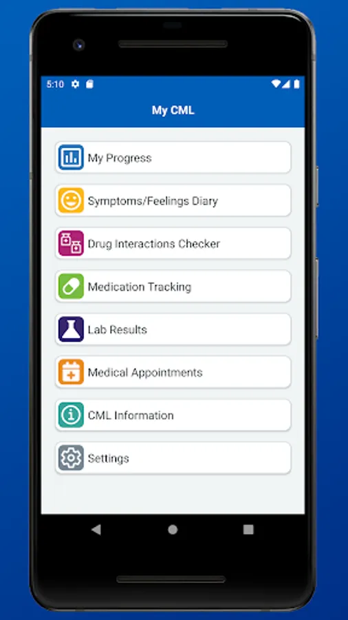 Designed by a team of NHS Pharmacists working closely with key CML patient support groups, My CML contains a set of specially designed functions to promote optimal patient outcomes. These include: