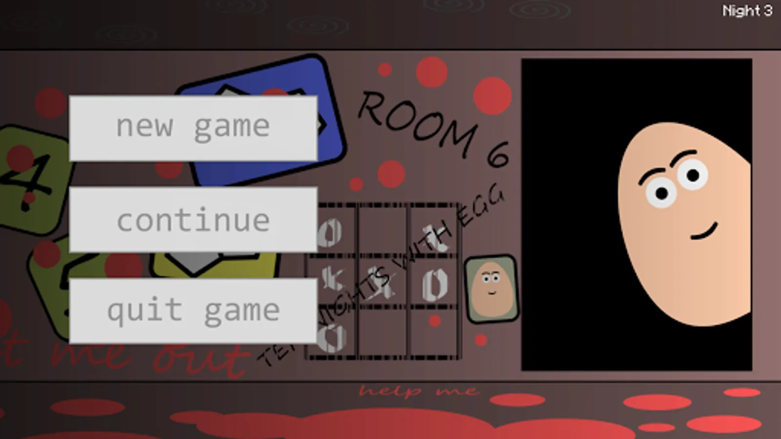 Welcome to the 10 scariest nights of your life. Now you will find yourself in the egg trap. This creepy monster will lock you in a strange room. First, take a look around and immediately feel the goose bumps run down your skin. You will be surrounded by strange pictures and scary inscriptions. The inscription "you will die here", then "you came to see your death", then "welcome to Hell" and many others. Also in the game there are many Easter eggs and creepy screamers. Horror, and nothing more. The game features 6 characters and over 10 nights. The difficulty of each night increases at a rapid rate. You can learn how to play by going through the first night, as it is the easiest. To survive, you need to stick to certain tactics and play fast. Also in the game there are additional nights (for the most tenacious) and many Easter eggs, which can be anywhere. The menu is the quietest place in the game. We tried to make TNWE diversified. We would also like you to tell other people about our game. This way we will understand that you like the game and will involve more employees in its development in order to release updates more often and better. And remember, TNWE is a place where fear and horror roam.