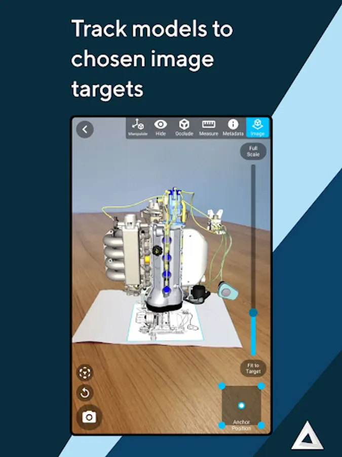 * Model Tracking (target model) – Overlays the 3D digital content over an already created prototype.
