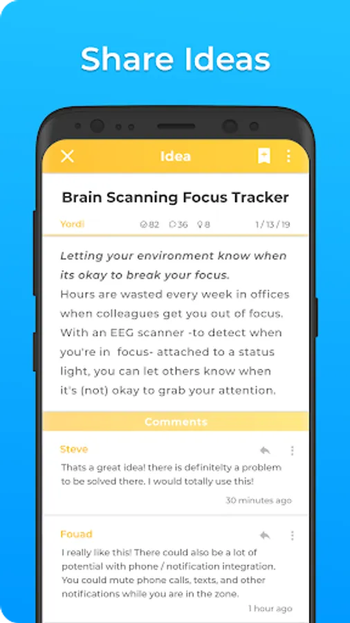 -We feel very strongly that in order for ideas to fully develop and hatch into something amazing, they need to get input and feedback from a community of like minded individuals. This way they can see the idea and brainstorm, collaborate and ideate together to fully form that idea.