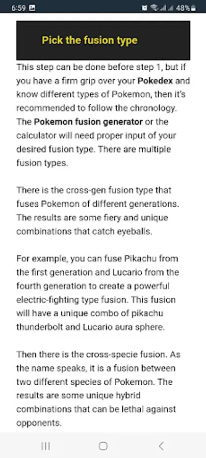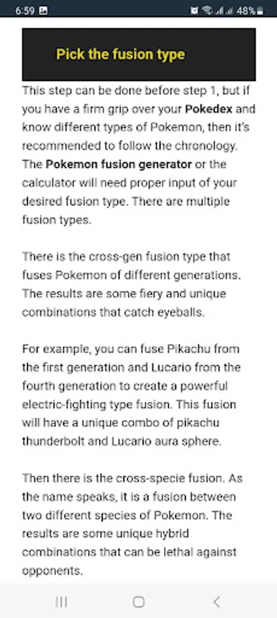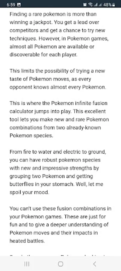 At Infinite Fusion Calculator, we provide a user-friendly and comprehensive platform for creating your own fusions. Our fusion calculator allows you to select two from any generation and instantly see what their fusion would look like, along with its name, type, abilities, and stats.