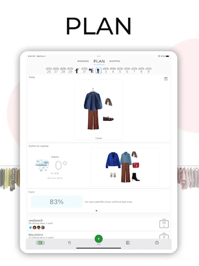 Take pictures of your clothes, upload them to your cloud-based wardrobe, create magazine-style outfits, plan what to wear, create packing lists, get inspiration and support from our community and showcase your style.