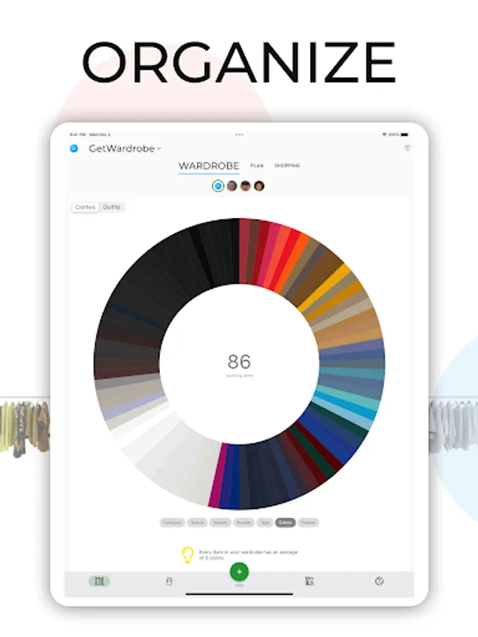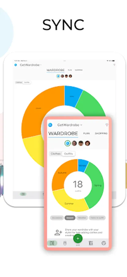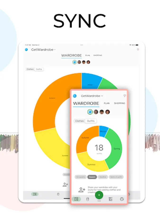 Getwardrobe SYNCHRONIZES your clothes and outfits between your devices. We have the tools to help you organize and manage your wardrobe and compose more looks out of your clothes.