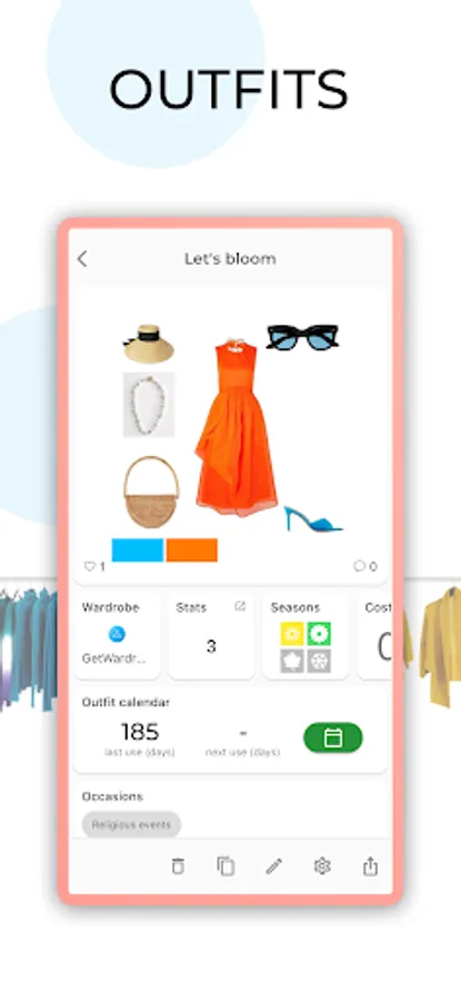 - WARDROBE: Add photos of your clothes or import from online stores using the standard sharing tool