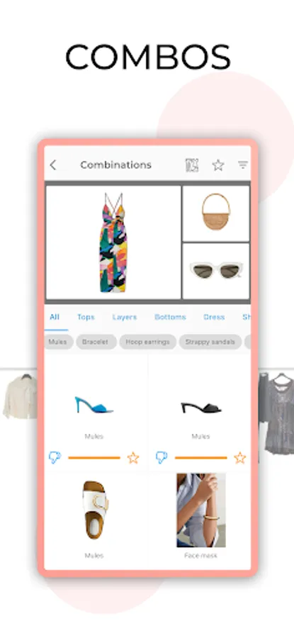 - COMBINATIONS: Use combinations to note good matches and explore new outfit ideas