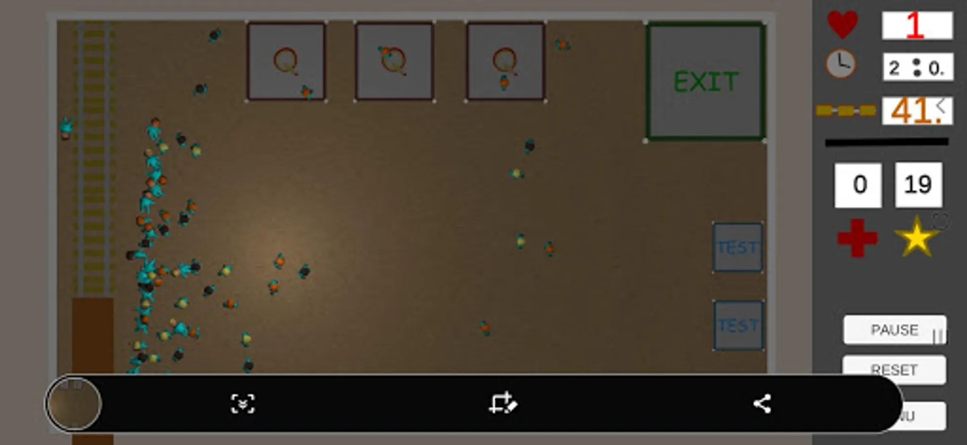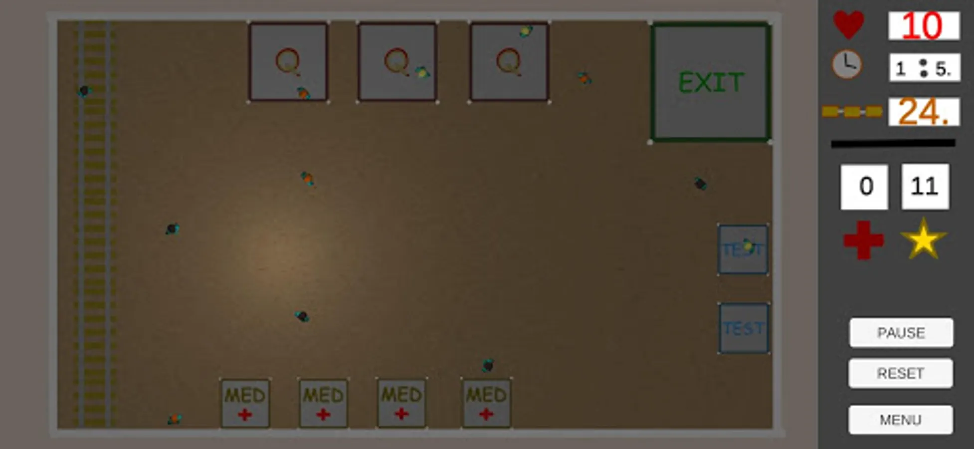 The train offloads people from areas where the virus has been prevalent. It is your job to quickly process and exit the inmates. If they are not infected with the virus, release them. If they are, keep them from dying by treating them at the medical facilities before releasing them.