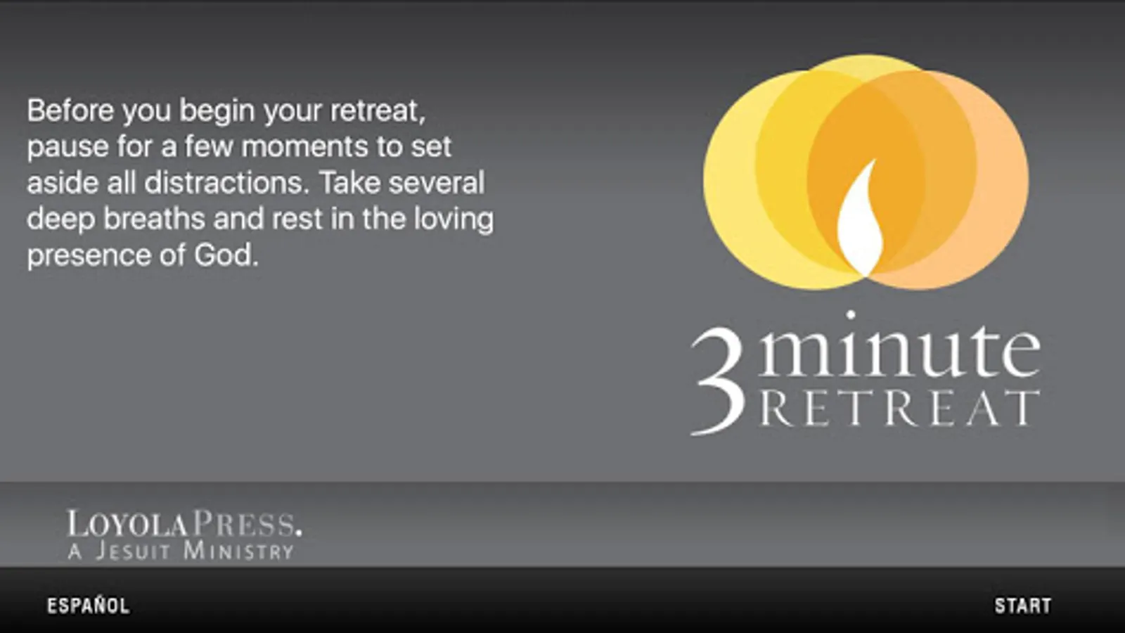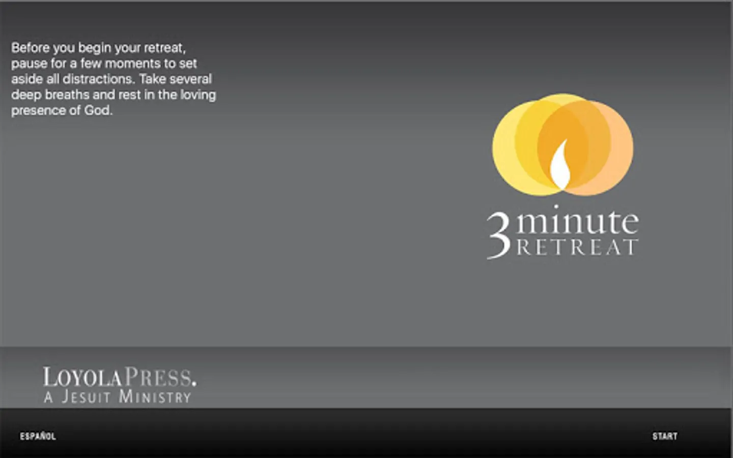 Download Loyola Press’s free app, the 3-Minute Retreat, for a peaceful prayer experience that helps you re-connect with God, re-center your day, and relax, wherever you are. Every day, the app guides you on a new bite-sized retreat filled with Scripture passages, soothing music, and reflection questions that you can pray at your own pace. Join the thousands of 3-Minute Retreat users who return each day to enrich their spirituality and rest in God’s loving presence.
