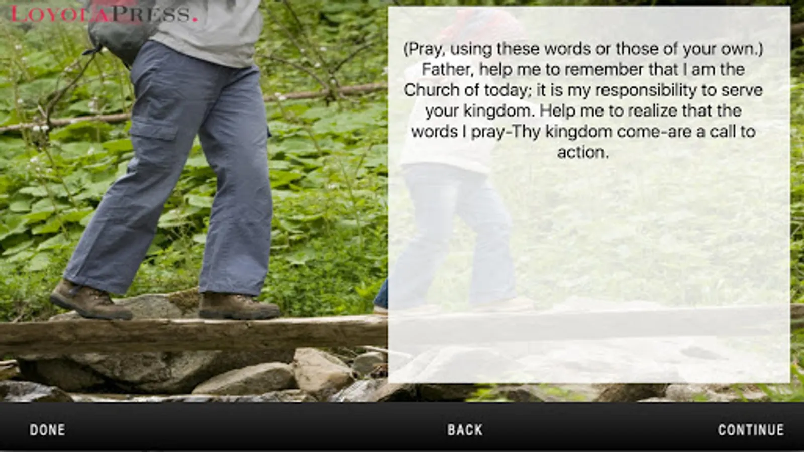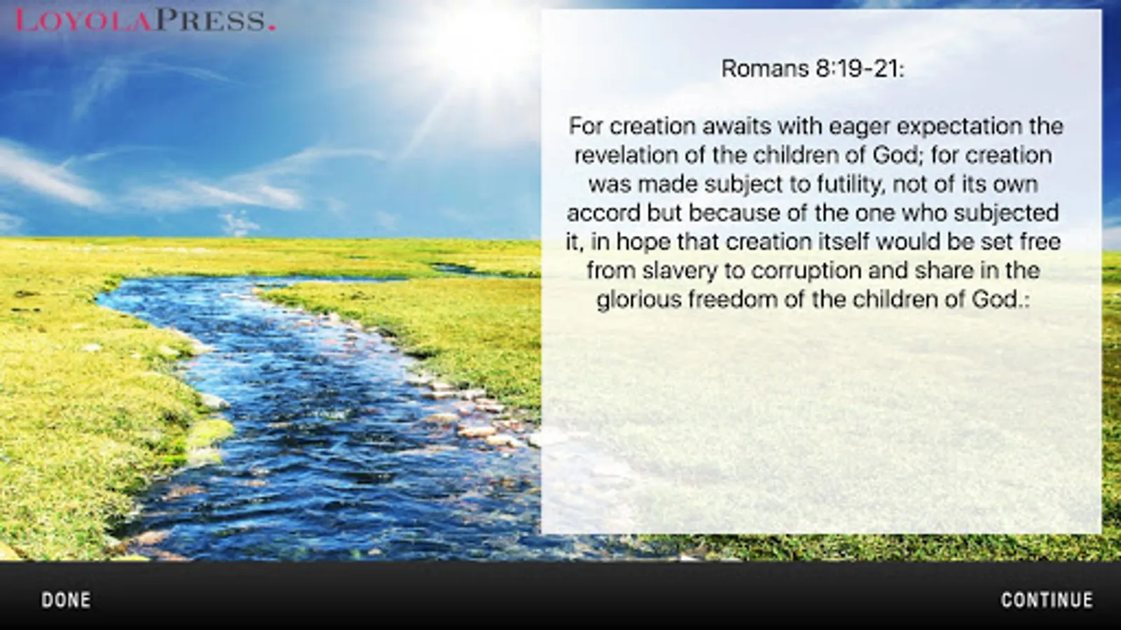 * Control over the pace of your prayer: Simply touch the “continue” button when you’re ready to move to the next screen