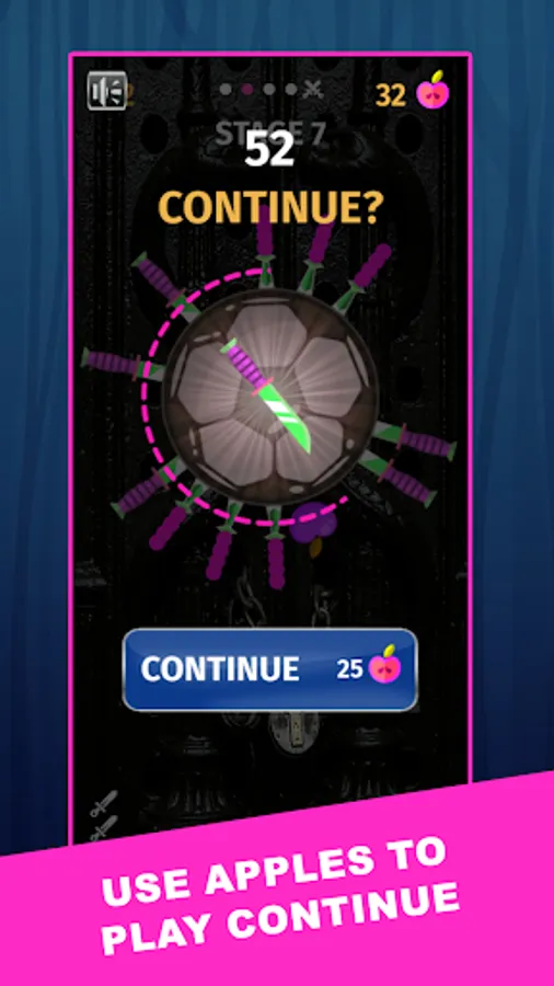 - Collect apples for points! Use the apples to get 2nd chance and upgrade your knives.
