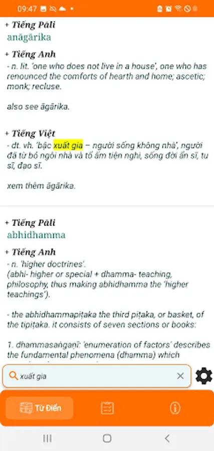 + Help monks and Buddhists quickly look up Pāḷi words or their respective English and Vietnamese meanings.