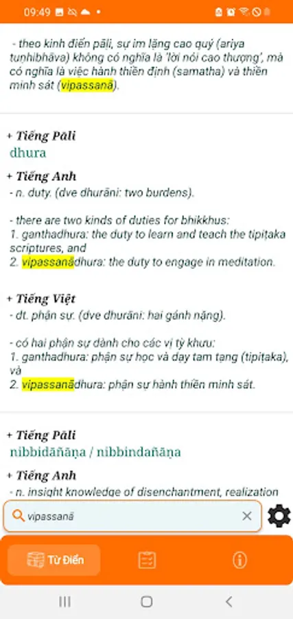 + Search by typing the word Pāḷi or English, Vietnamese.