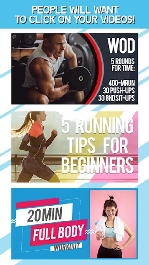 Whether it's a call to action, some useful information or a clickbait title, you can easily add text with this thumbnail maker & banner maker. Attach stickers from this thumbnail editor that will promote your content when you make thumbnails. And with ready-made templates that this Thumbnail Maker for Youtube no Watermark provides for free you will be able to find everything you need inside this thumbnail creator app.