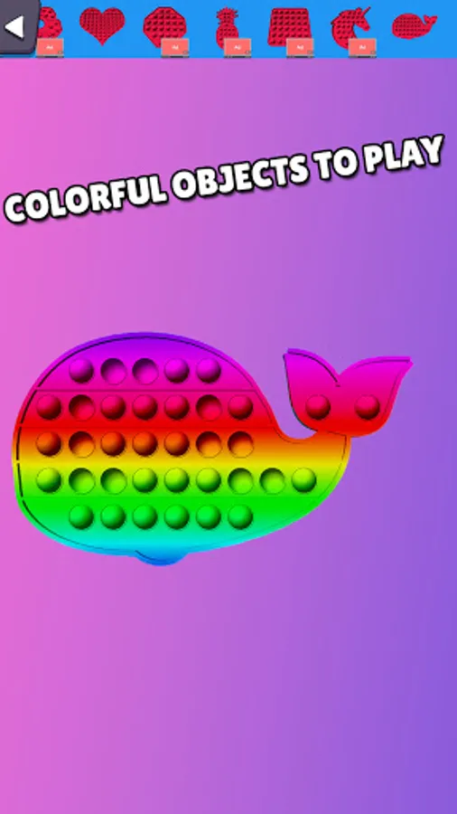 The game features multiple toys to choose from and different vibrant colors and backgrounds.