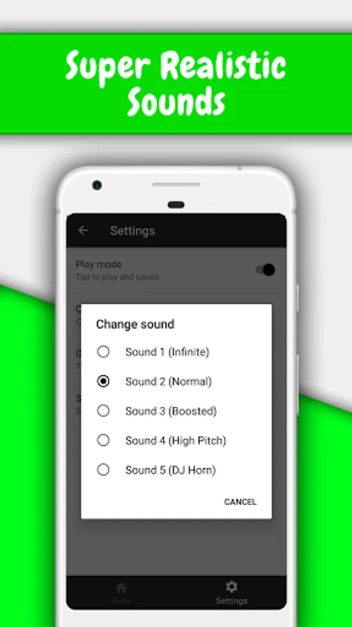 Tired of just one air horn sound? Not anymore, now you have the option to change the sound to make the most fun out of this app.