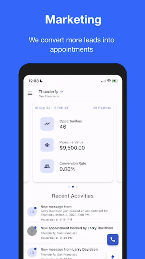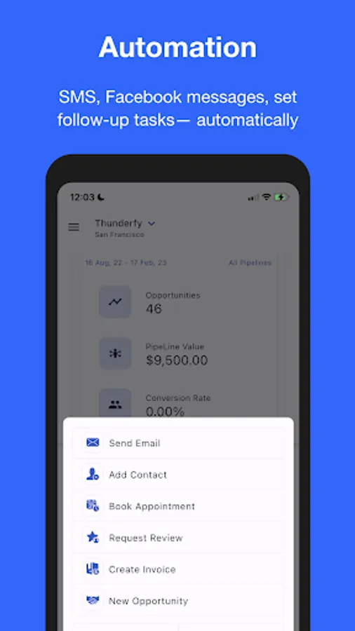 Thunderfy comes with built-in phone, SMS, MMS, email, Facebook Messenger, AI automation, lead and appointment management.