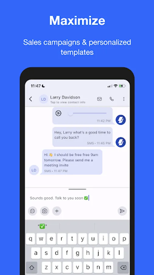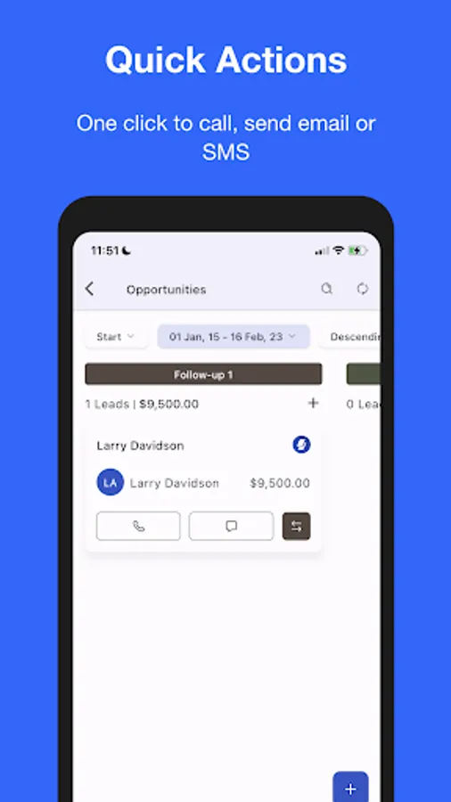 One click to call, send email or SMS. View all your conversations in one place.
