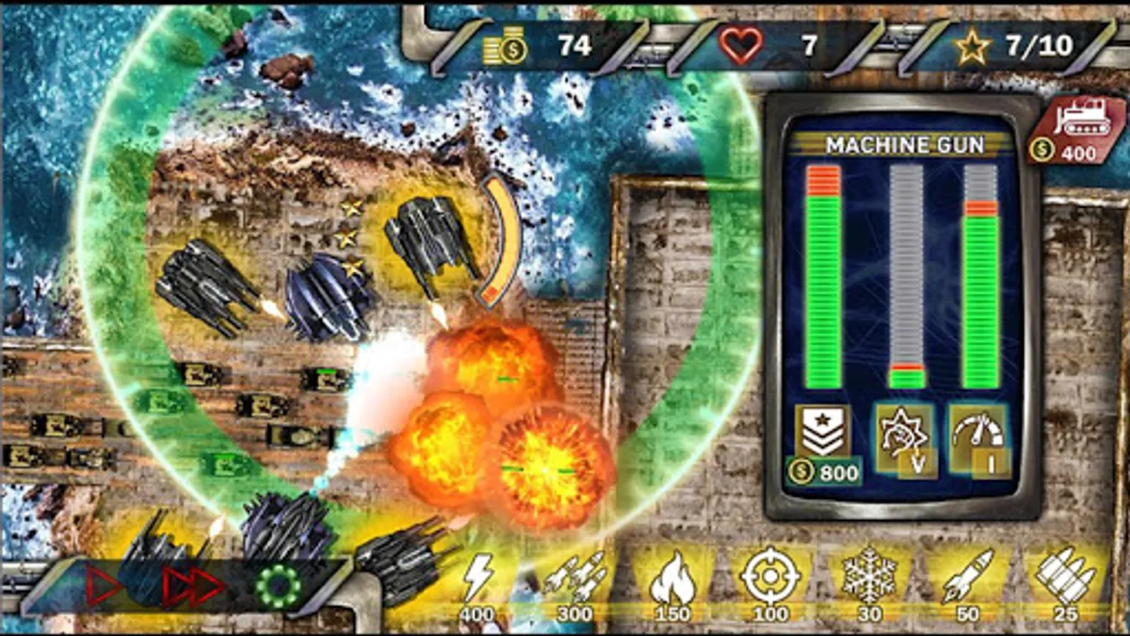 Strategy genre Tower Defense. Here you will fight against numerous enemies, defending their zone. Take control of the most powerful towers to stop tanks, airplanes, ships and other equipment. Expand your influence zone on huge maps and correctly arrange turrets and towers. Try to win this intense war, using different strategies, as well as relying on your skill and tactical skills. Remember that in this game every battle is like a royal battle! Your towers are not toys! They are ready to erase every alien!