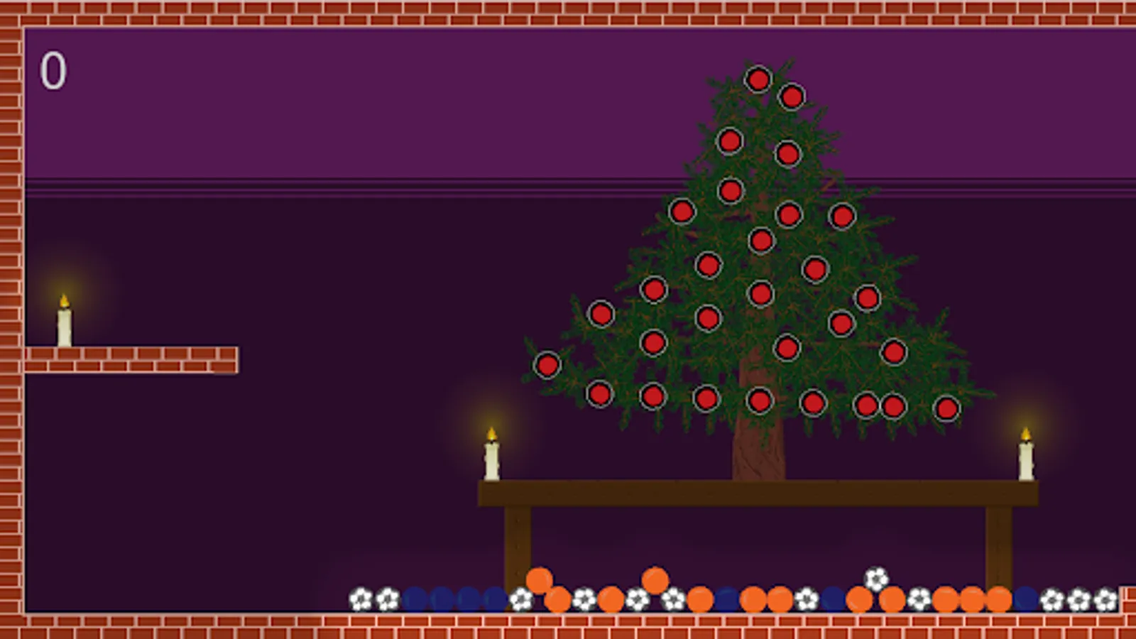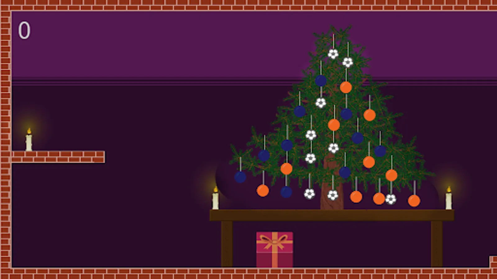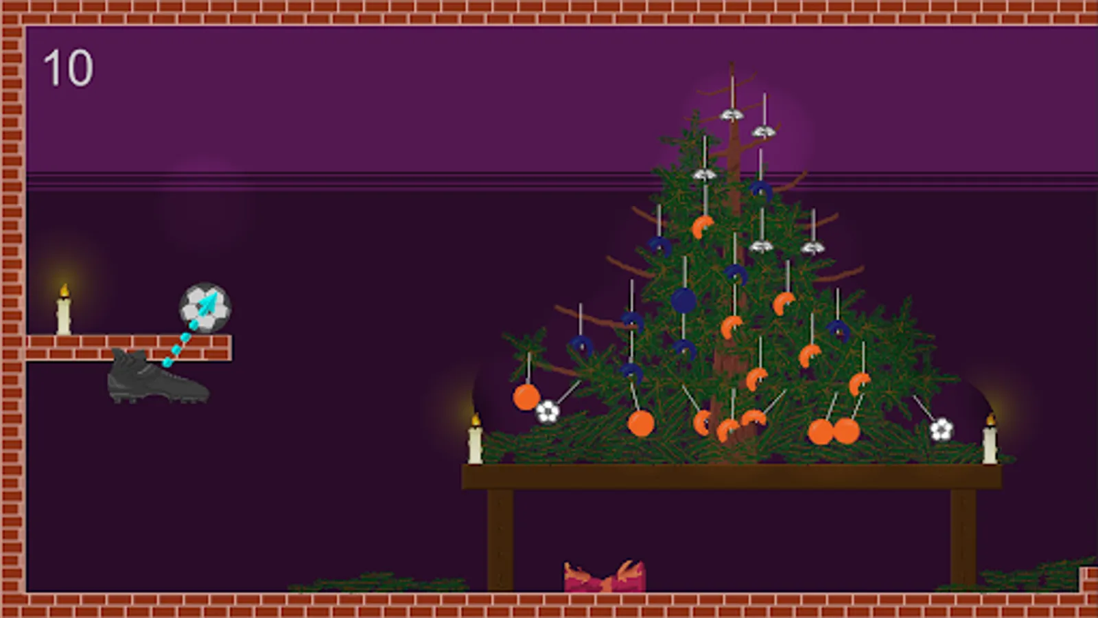 Game, demolition: pull the shoe and kick the ball in the desired direction. The game ends when all the xmas tree leaves fall and all the decoration has been broken.