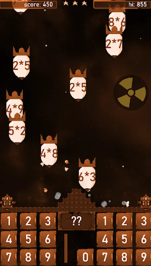 Each missile of enemy has own numeric value, and by setting the two sides of multiplication you can aim the laser beam to demolish these bombs.