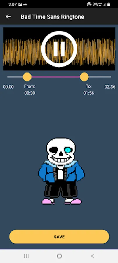 Hi .... Bad Time Sans Fans .... Now You can Play Bad Time Sans Music and You can set it as for ringtone and more... This app by fans for fans of Bad Time Sans Undertale Megalovania Music ...