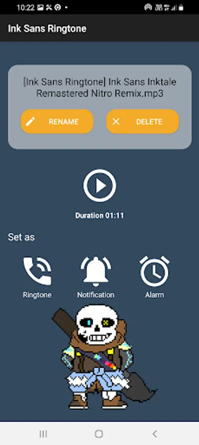 Hi .... Ink Sans Inktale Fans .... Now You can Play Inktale Music and You can set it as for ringtone and more... This app by fans for fans of Ink Sans Undertale Tokyovania Shanghaivania Megalovania Music ...