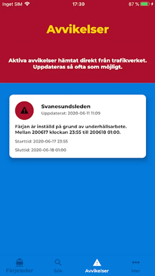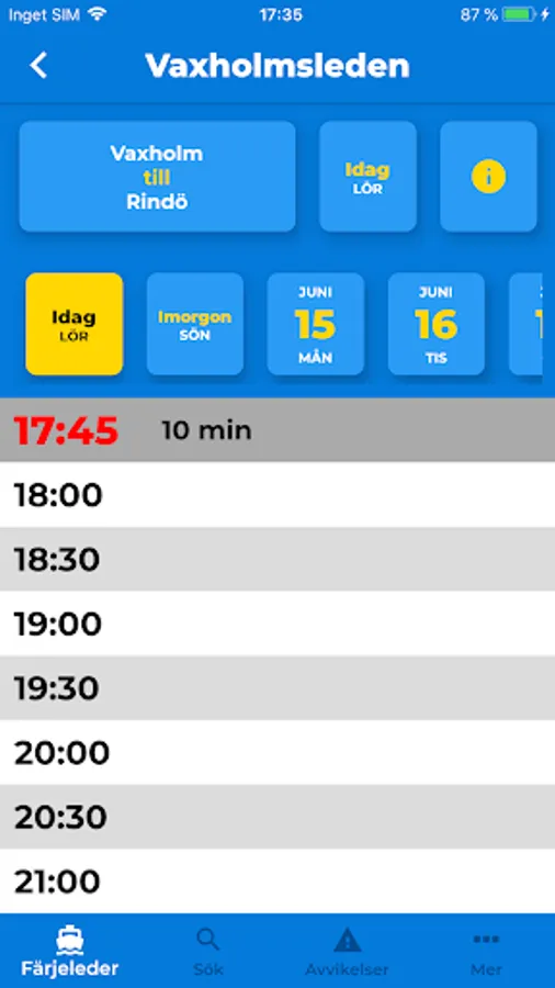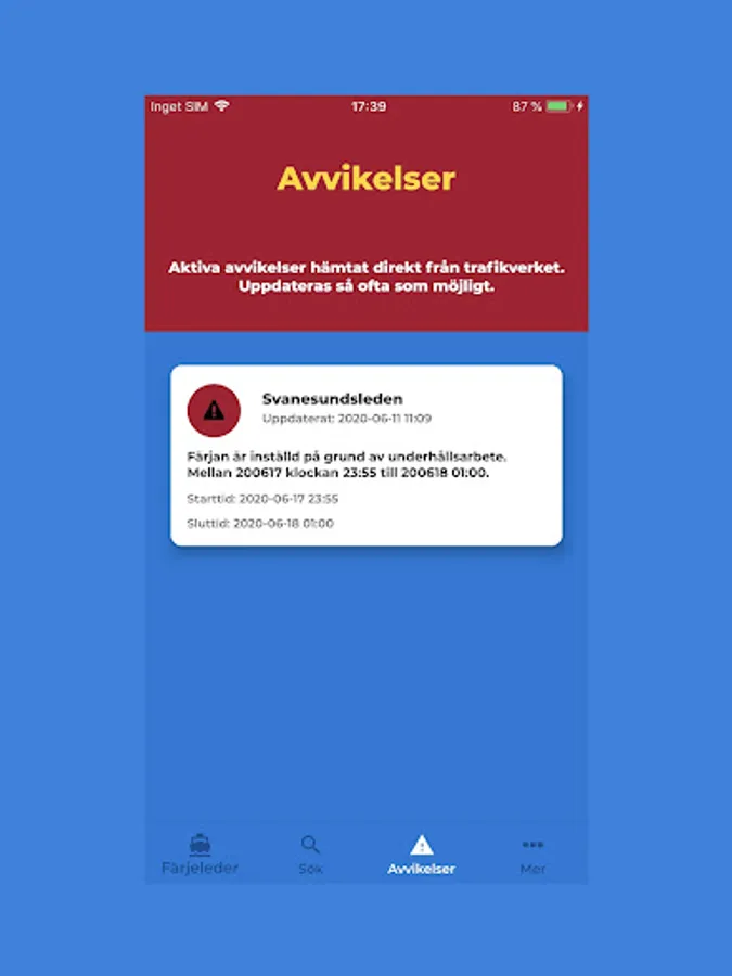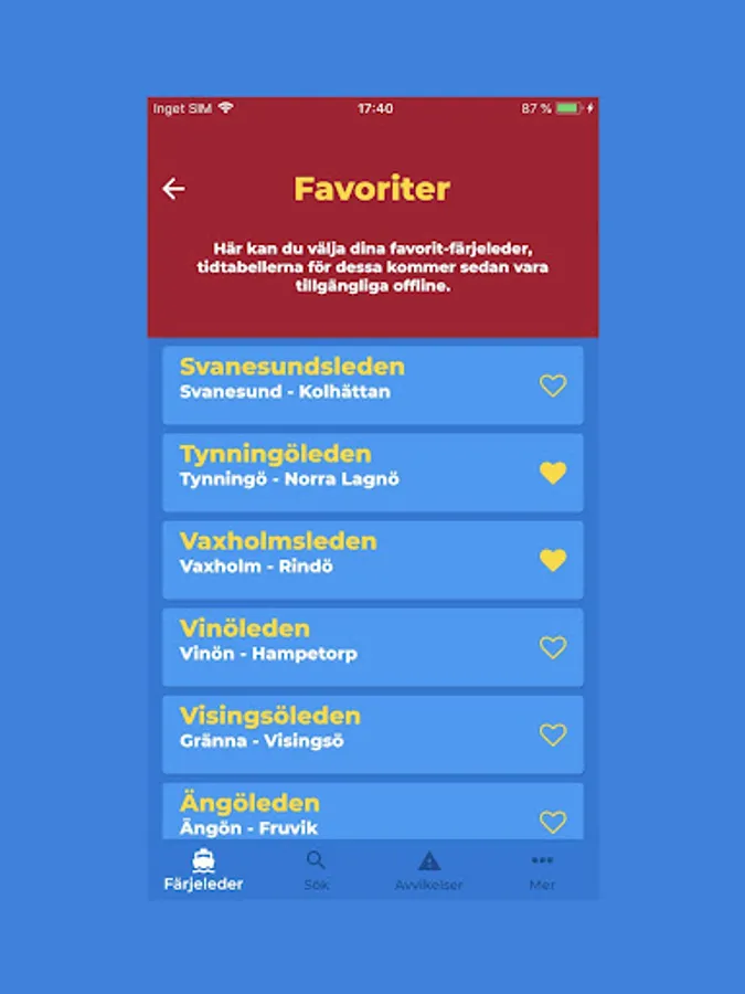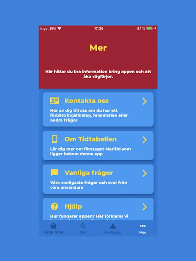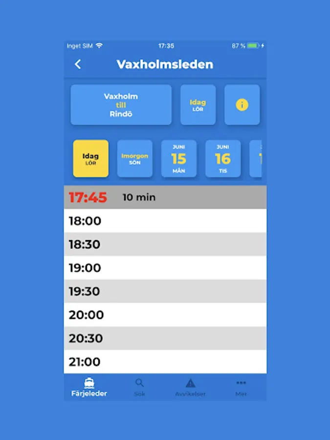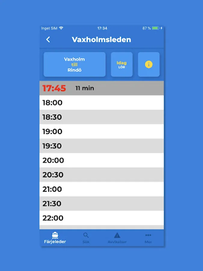 We will help you in a modern and accessible way to see the current timetable of all ferry shipping company ferry routes. You can easily see the next scheduled departure, even if you are not connected to the Internet. Environmentally friendly way to read the timetable and without the risk of tokkörningar using simple planning.