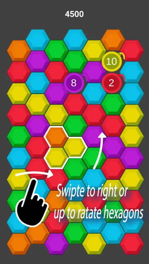 Rotate hexagons, match three and blow them. Also be carefull about the bombs!