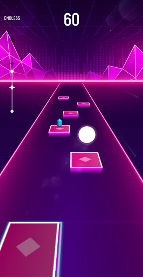 1. Touch, hold and drag to 2 sides to control the ball to jump on the tiles.