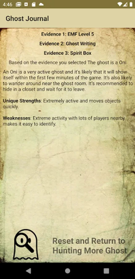 This is an unofficial fan-made app to help Ghosthunters in the game more easily find the ghost in the game by tracking evidence for each ghost in the app.